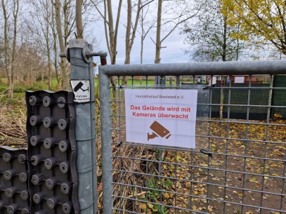 Einige Wochen später erhielt der Vorstand ein Schreiben der Landesbeauftragten für Datenschutz. Es wäre eine Beschwerde eingegangen, dass der Freilauf mit Kameras überwacht wird und offensichtlich öffentlicher Raum ebenfalls überwacht wird. Desweiteren sollten die Hinweisschilder zur Kameraüberwachung fehlen.