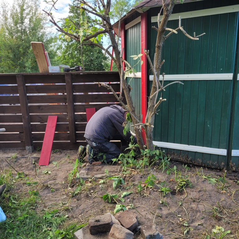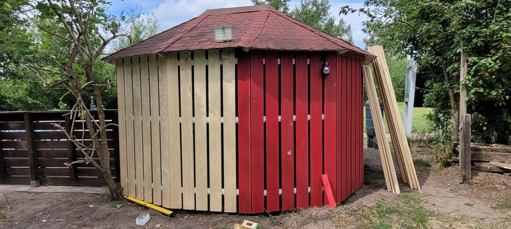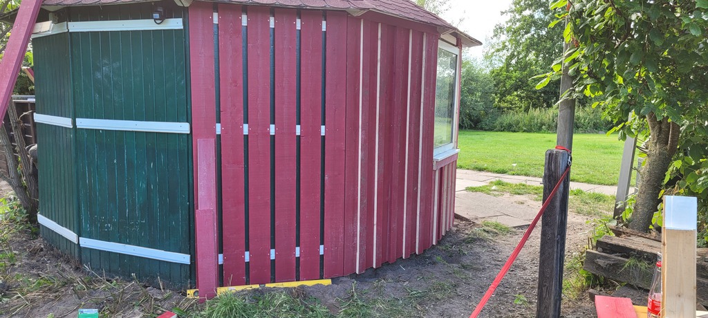 Unsere Wetterschutzhütte war renovierungsbedürftig. Von außen erhielt sie eine neue Verkleidung. Von innen einen neuen Anstrich.