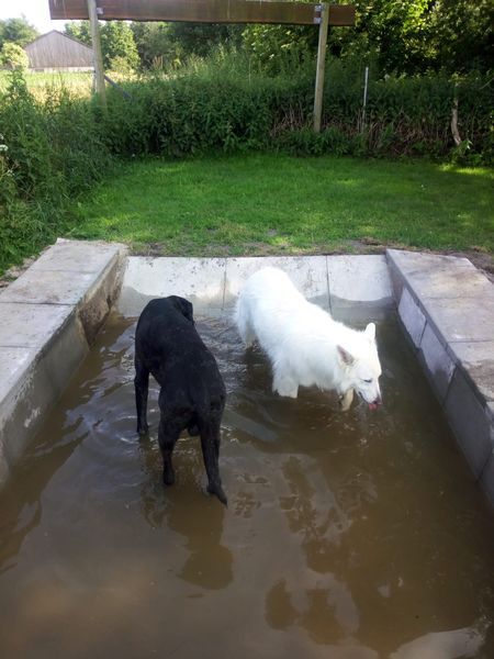 Eine Probe wurde in einem Labor mikrobiologisch untersucht, damit können wir sicher sein, dass das Wasser für unsere Hunde gesundheitlich unbedenklich ist. Zwischenzeitlich haben fleißige Helfer die Pumpe zudem so mit einer Holzabsperrung gesichert - gespendet von Udo Reichert, dass die Hunde sich bei ihren Rennspielen nicht verletzen können. Ist doch super, oder?